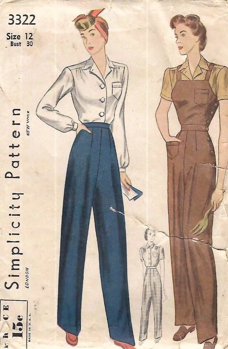 1940 Vintage Sewing Pattern Bust 36 Waist 30 Blouse Trousers Overalls R807 By Simplicity 3322 The Vintage Pattern Shop